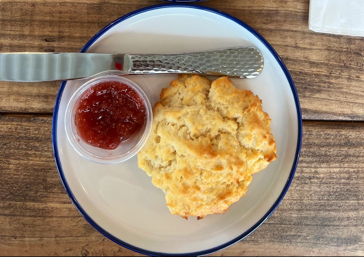 The highlight of the menu includes their delicious Biscuits & Gravy, a comforting classic that’s sure to start your day off right. Each bite of the fluffy biscuit smothered in savory gravy is a taste of home, and it pairs perfectly with a cup of 5013 Coffee Heath’s rich, smooth brew. For a lighter, sweet treat, the Biscuit with Strawberry is another favorite. This indulgent yet simple dish combines the lightness of freshly baked biscuits with the sweetness of ripe strawberries, making it a delightful choice for those with a sweet tooth.